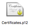 The certificate key and the private key need to be generated from the .p12 file. To generate the files: